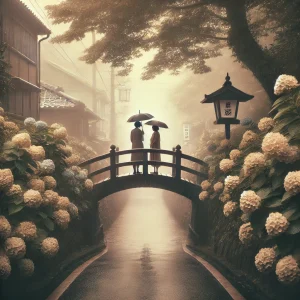 博多の雨と紫陽花に濡れたあの橋に、二人だけの記憶が今も残る。