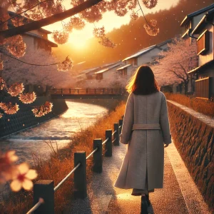 ただ彼女の横を歩いた。沈黙の中、川の音と、風に舞う花びらだけ